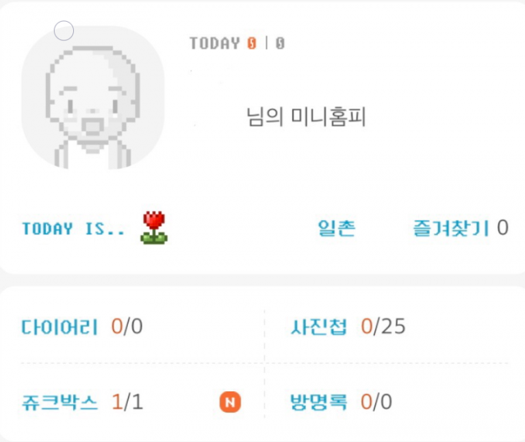 로그인 후 미니홈피를 클릭하시면 프로필, 카테고리, 미니방 등을 확인하실 수 있습니다.